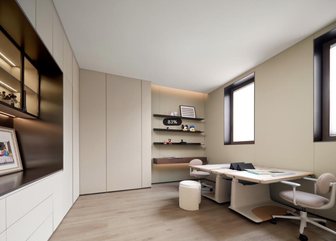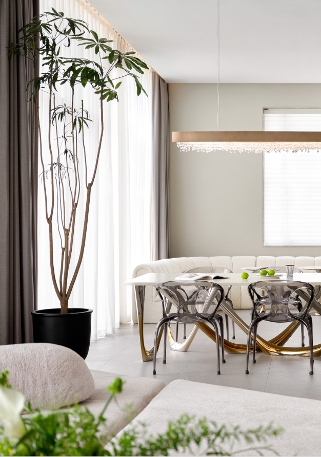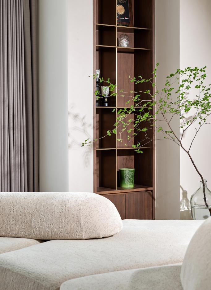 宽敞明亮的客厅让人倍感舒适,宽大的沙发紧密地围合出活动区域。动线规划清晰明了与家具布局相得益彰,呈现出严谨的“矩阵”,给予居住者源源不断的安全感。