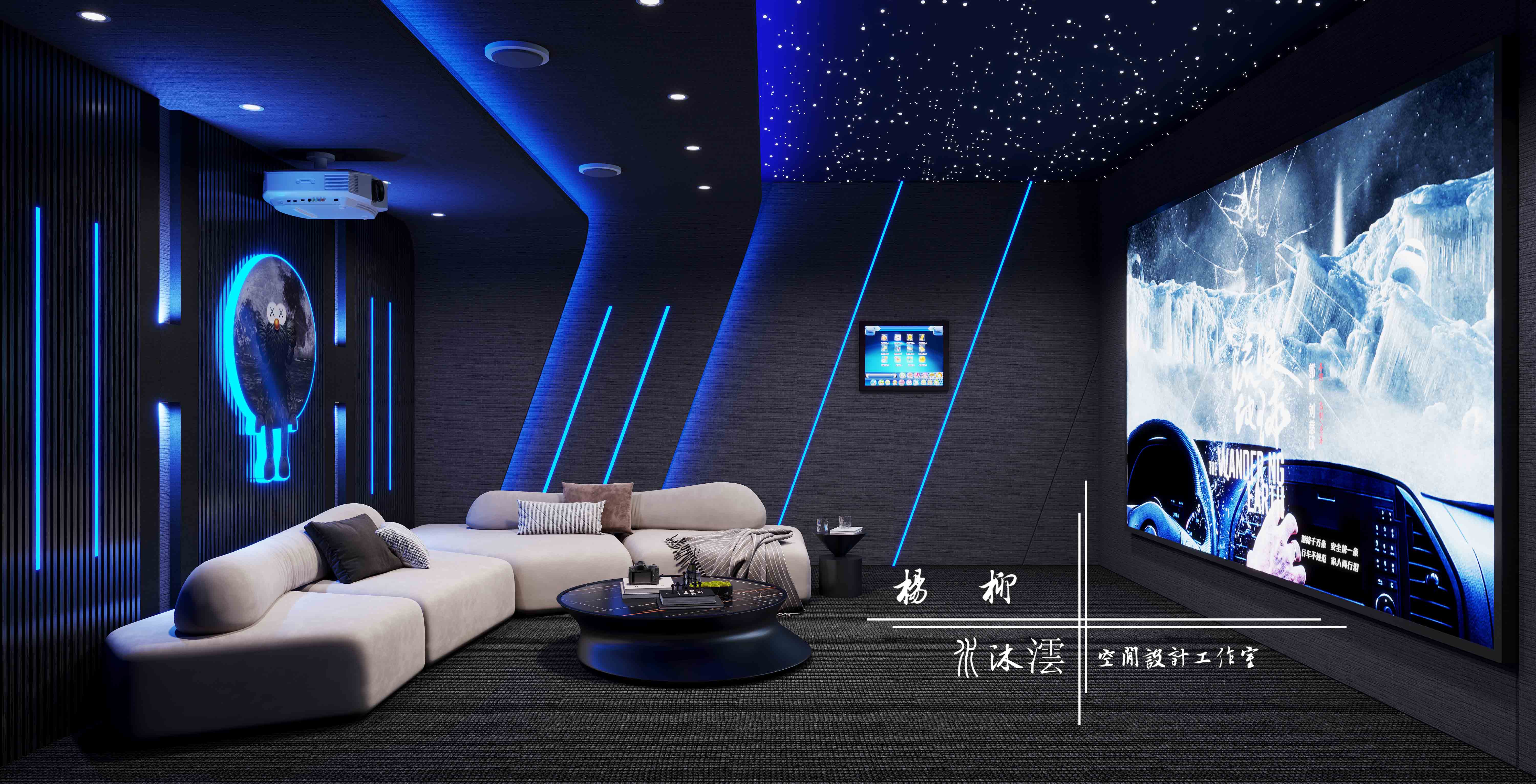 影音室里设计了只有豪车上才能看到的星空顶的造型