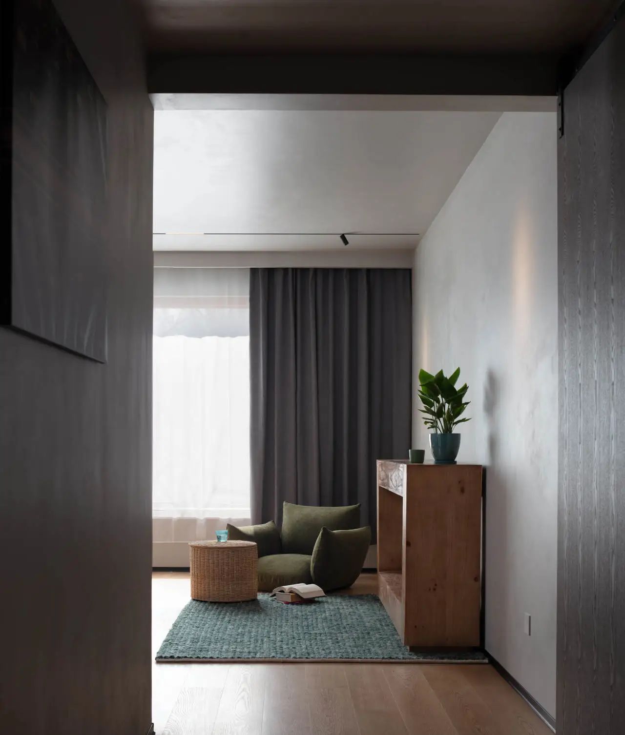 设计师看待空间的节奏,空间之间既开敞又围合,不同于平铺直叙的直白、刻板,迂回的动线在视觉上创造了互相对望的远近上下,在娓娓道来的节奏感中,浑融典雅,柔婉又庄重。