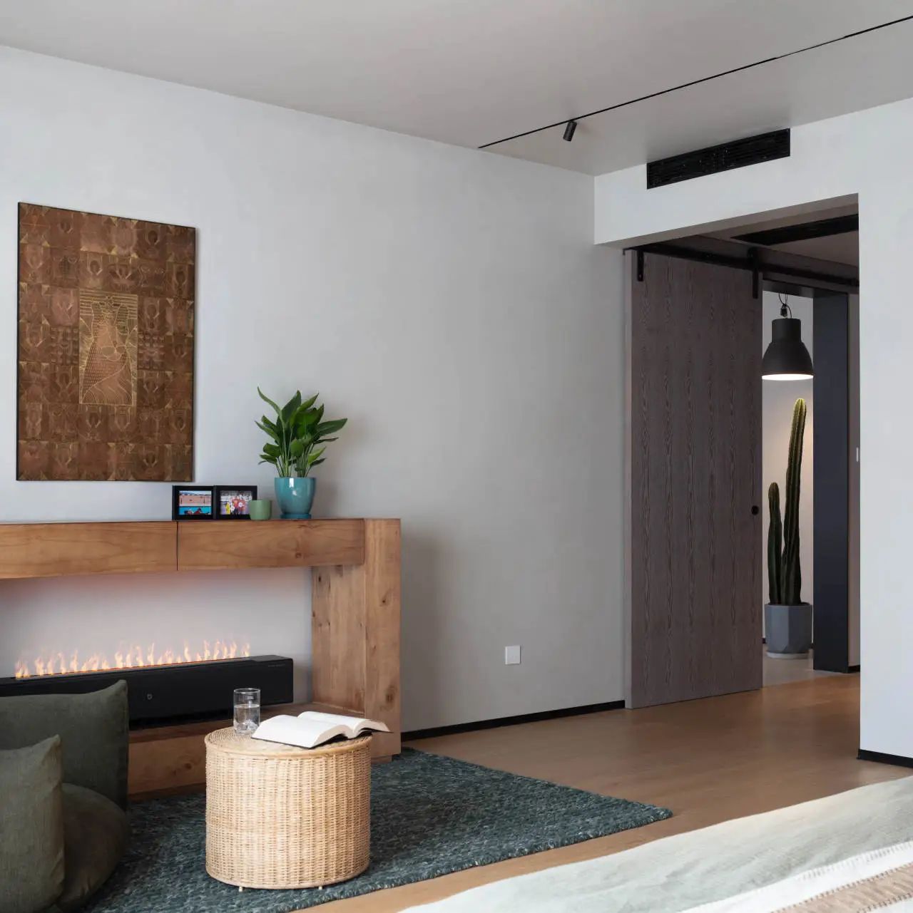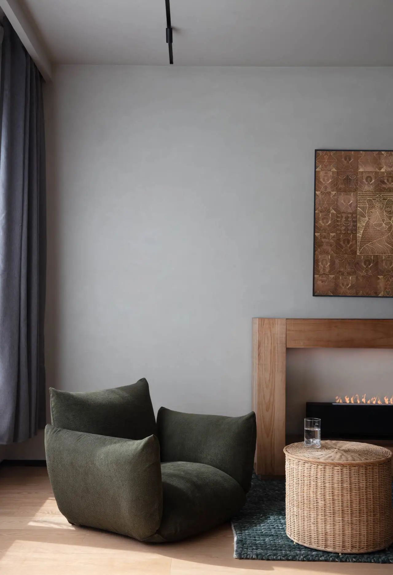 床对面设计了壁炉,通过巧妙地将居者的独特个性融入空间布局,将他们的喜好自然嵌入日常生活,我们创造了一个能够讲述居者独一无二生活故事的空间。