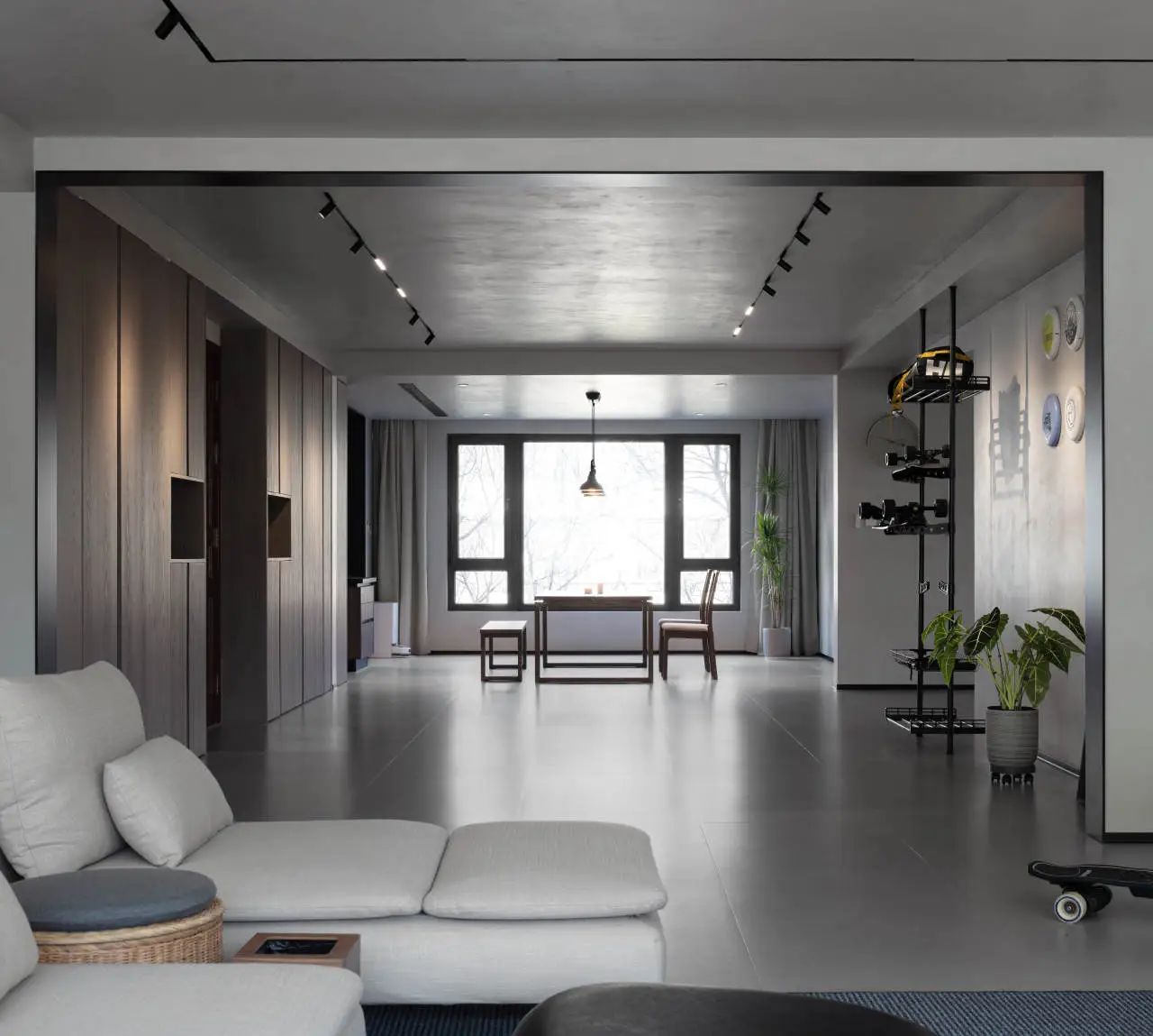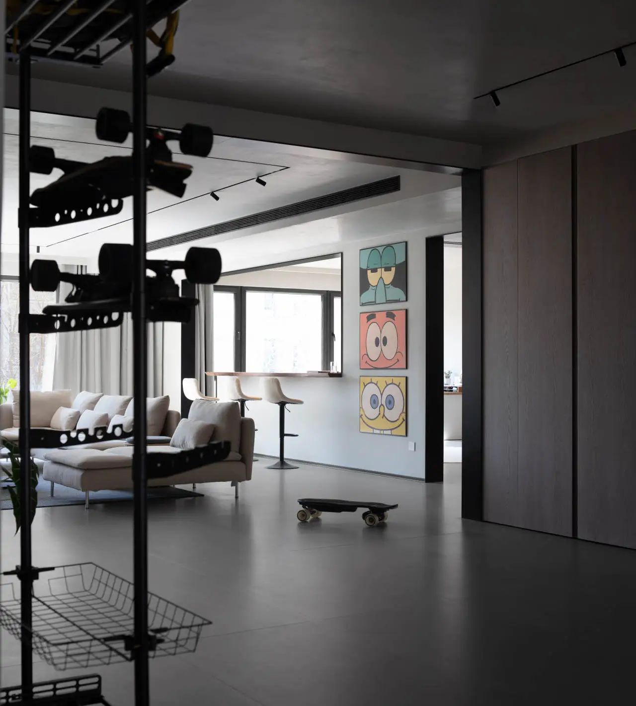 初次邂逅业主,他那独特的个性便深深吸引了我们,作为一位黑胶音乐的爱好者、飞盘教练、健身达人以及滑板高手,业主不仅拥有丰富的阅历,还因长期国外生活而对空间自由度有着极高的要求,他渴望一个能够彰显自我性格的空间。